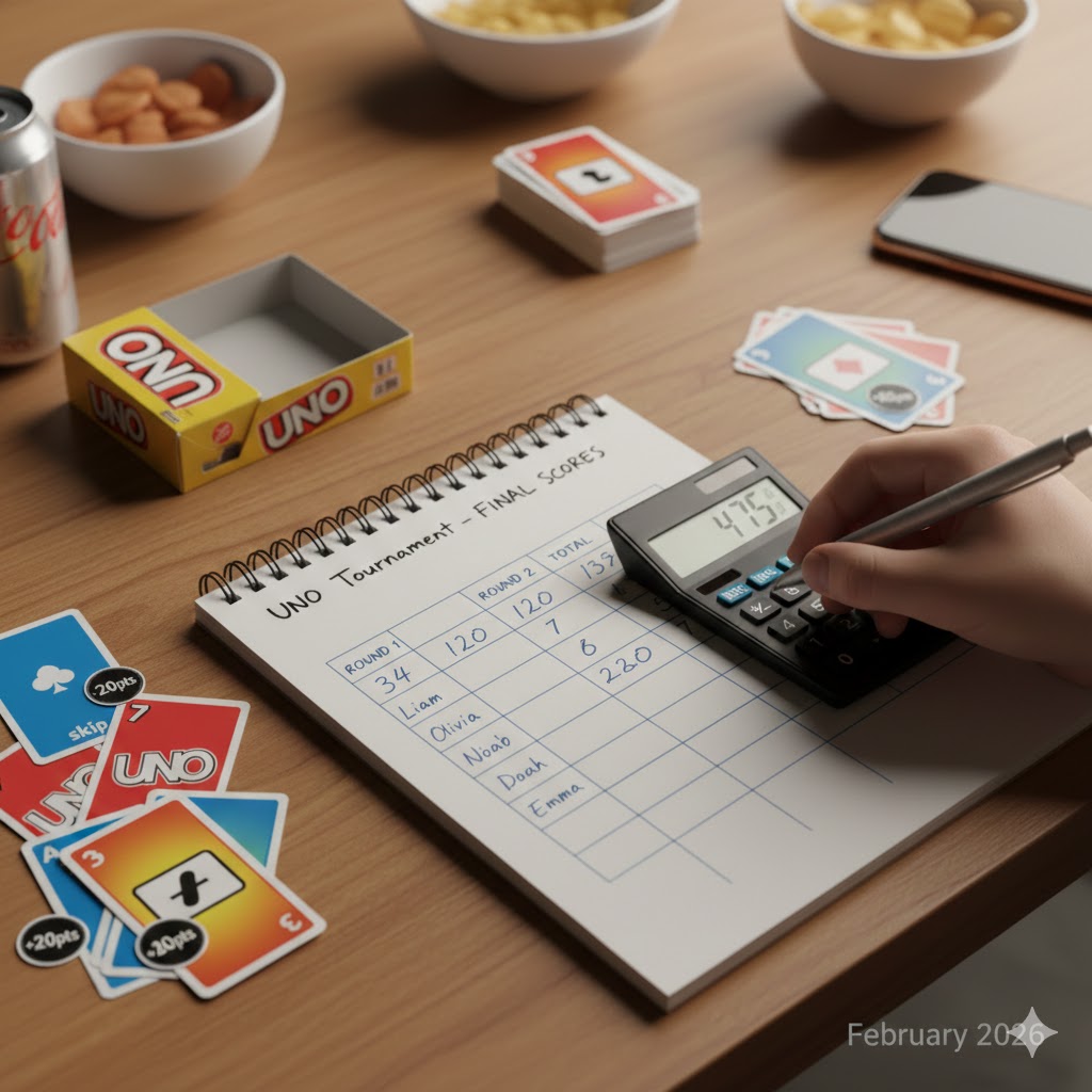 To run a proper UNO tournament in New Zealand, a dedicated scorekeeper is required to maintain a ledger of all round results. After each round, the winner’s name is recorded along with the total point value of the cards remaining in all other players' hands. It is helpful to have a "Quick Reference Sheet" for point values (0-9 = Face Value, Actions = 20, Wilds = 50) to speed up the transition between rounds. Consistency is key; ensuring that every player understands whether they are playing official rules or house variations prevents disputes when the scores start climbing toward the 500-point mark.