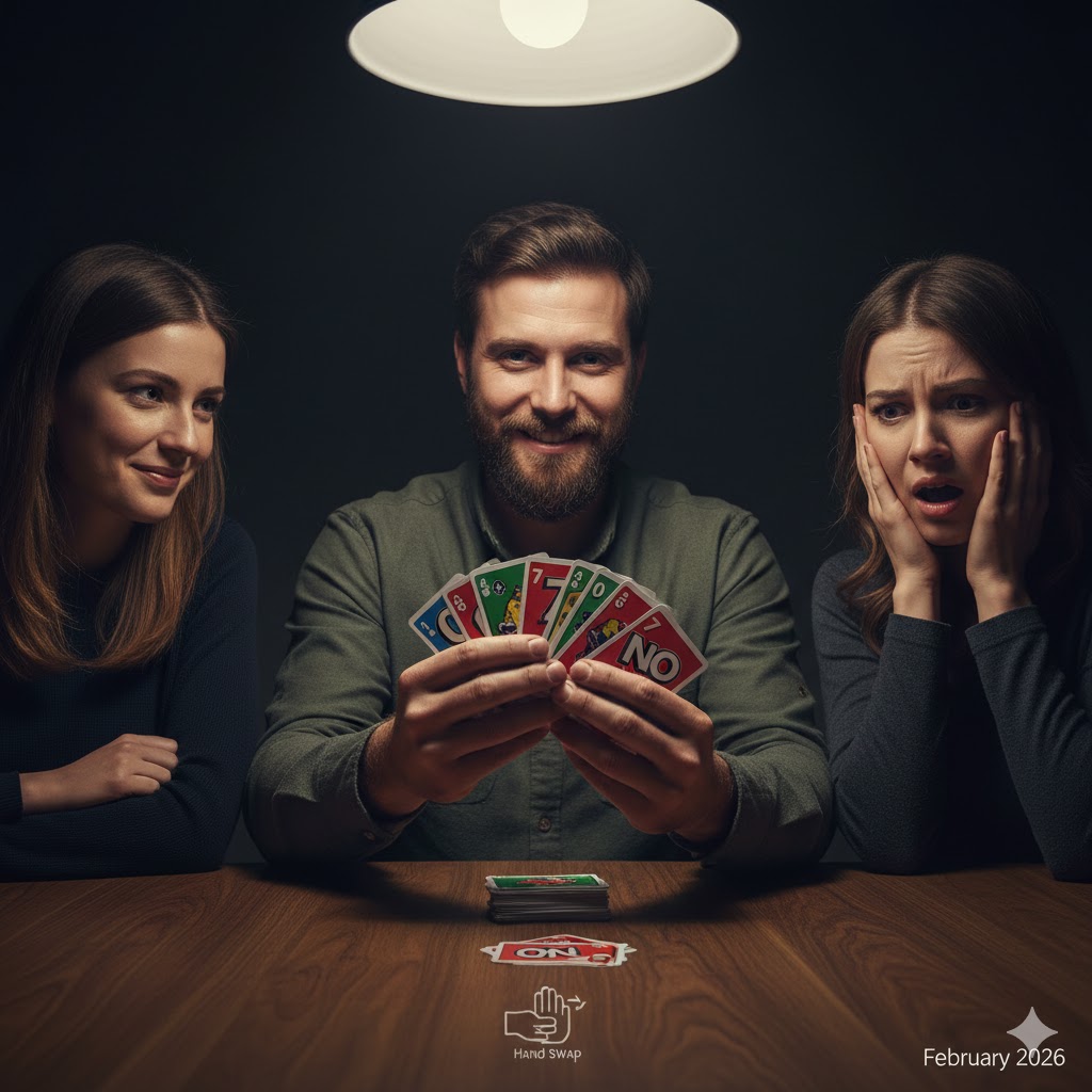 In a two-player game, the official UNO rules vs house rules differences become even more apparent. Officially, a Reverse card in a two-player game acts exactly like a Skip card—it skips the opponent’s turn and allows the player who placed it to take another turn immediately. Many house rules incorrectly treat a Reverse card as a null action or simply a color change, which fails to utilize the card’s tactical power in a head-to-head scenario.