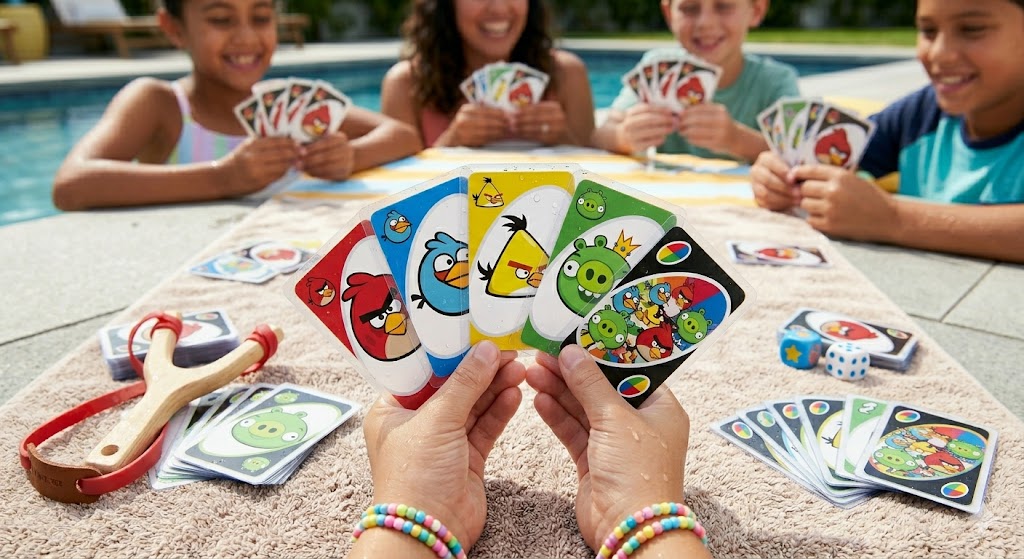 Is Uno Angry Birds suitable for six-year-olds? The recommended age is 7+, but younger children can play if they understand basic color and number matching.