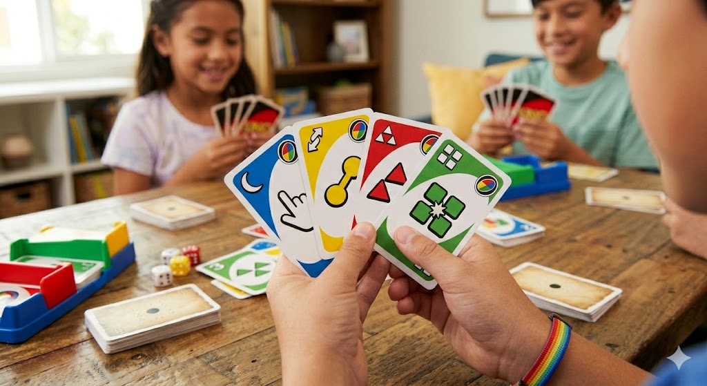 When playing with younger children, you may want to simplify the rules by removing the scoring system or the "challenge" rule for Wild Draw Fours. Focus on the symbol recognition first. Ask the child to describe the shape on the card— "Does it have a triangle or a line?"—to reinforce their learning. This makes the game a fun puzzle that builds confidence in pattern recognition and social interaction.