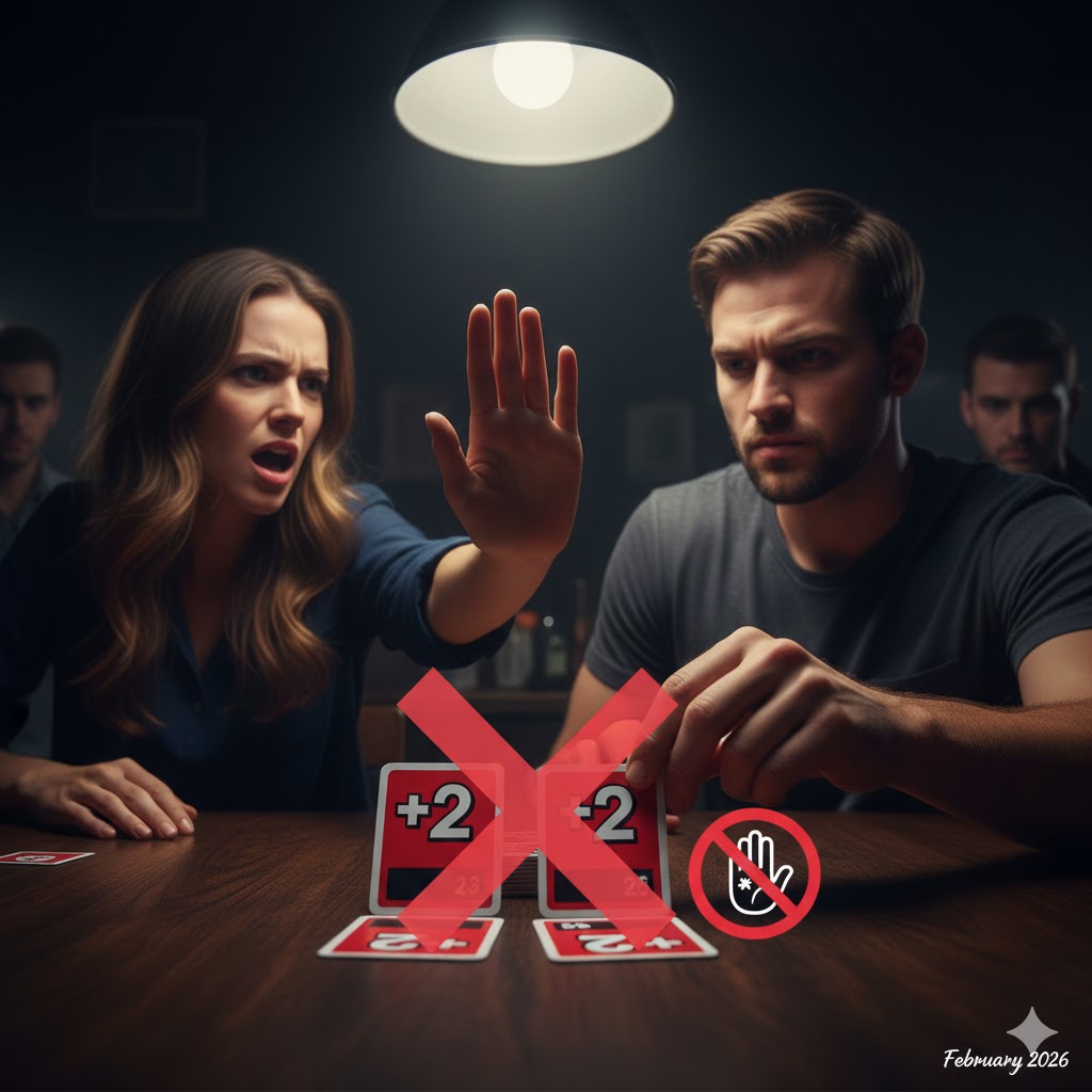 Stacking turns the Draw Two into a volatile "bomb" that can eliminate a player's chance of winning in a single turn. Official rules maintain a steady pace, ensuring that a 2-card penalty remains a manageable setback rather than a game-ending catastrophe.