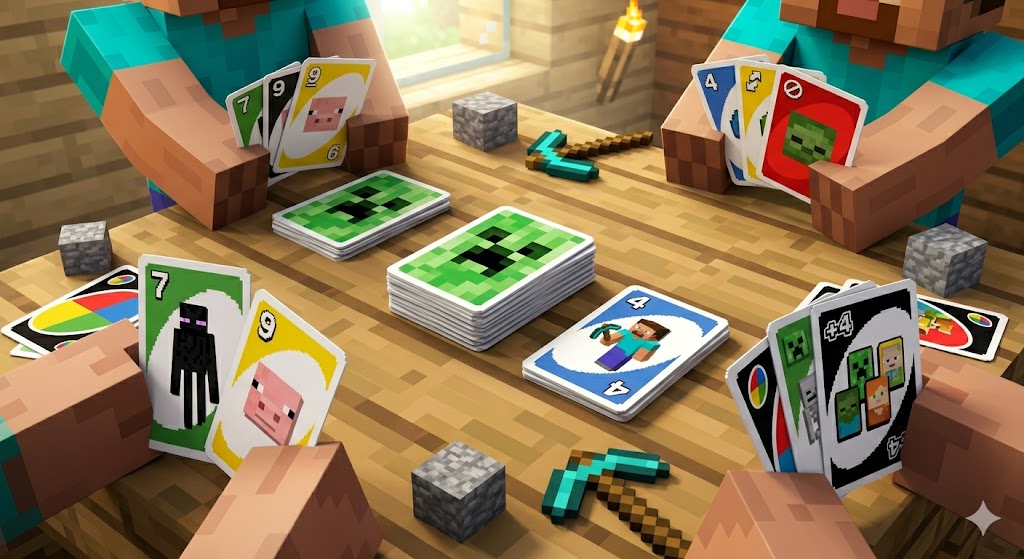Is Uno Minecraft harder than regular Uno? The core rules are the same, but the Creeper card adds a slightly more aggressive draw penalty that requires more strategy.